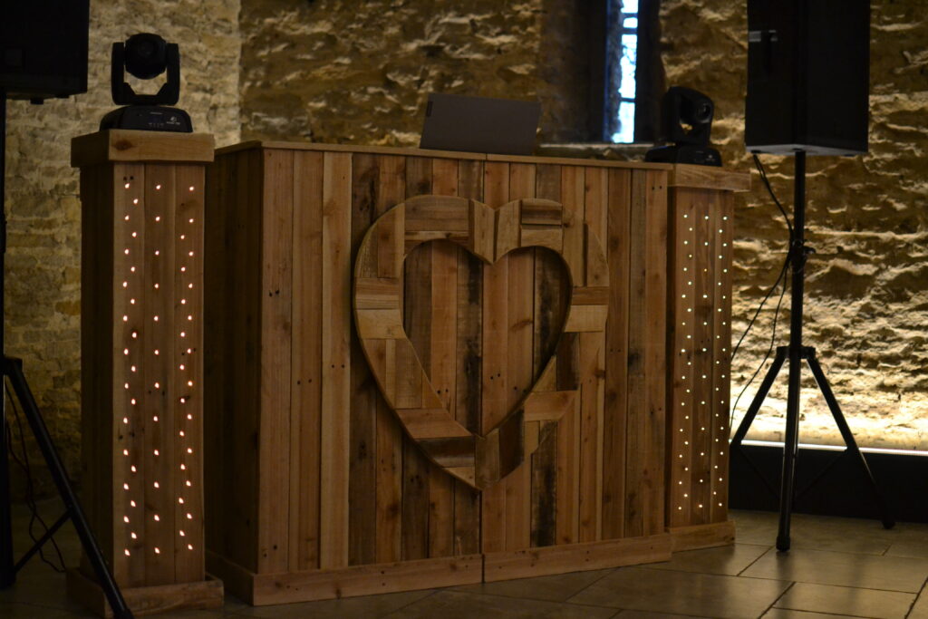 Working as a wedding DJ in Northamptonshire is a privilege! Indeed, the county boasts some of the most beautiful venues in the country throughout its rural and urban areas. Whilst selecting great music is arguably a DJs primary function, we also enjoy adorning idyllic locations with our disco lighting and uplighting. To do this, we often use our rustic DJ setup which consists of a wooden DJ booth, two wooden podiums (which are used to mount our disco lights) and a neon sign. Similarly, we also like to our haze machine to enhance the effects of our disco lights.